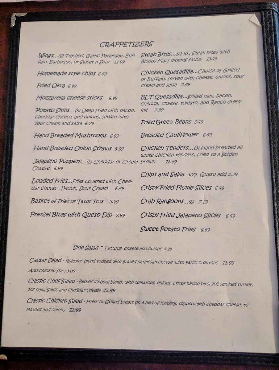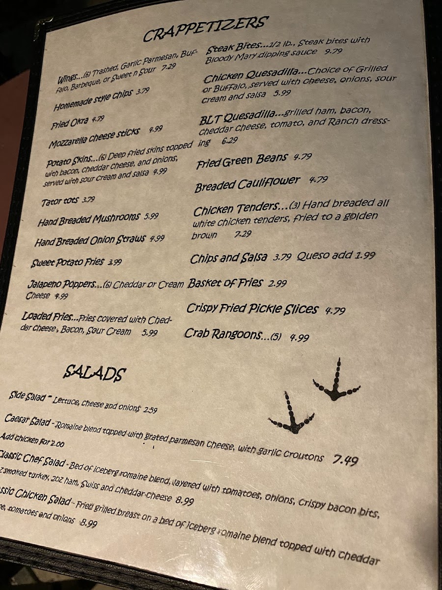 The Crappie Hole Menu